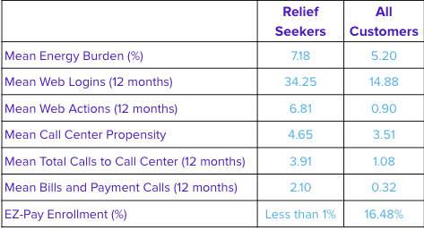 BlastPoint conducted a comprehensive analysis for a community-owned utility to gain a deeper understanding of customer satisfaction (CSAT) levels for more effective planning and targeting. The analysis identified six distinct CSAT customer segments, offering valuable insights into how to connect with the right customers at the optimal time with tailored messaging. Among these segments, BlastPoint highlighted a targeted group that displayed significant patterns, particularly within households experiencing the highest energy burden (Named this segment as “Relief Seekers”):