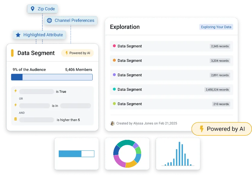 Tap into sophisticated AI and machine learning models without the complexity. Understand customer needs, predict behavior (like churn, propensity to buy, program enrollment), and automate personalized outreach.